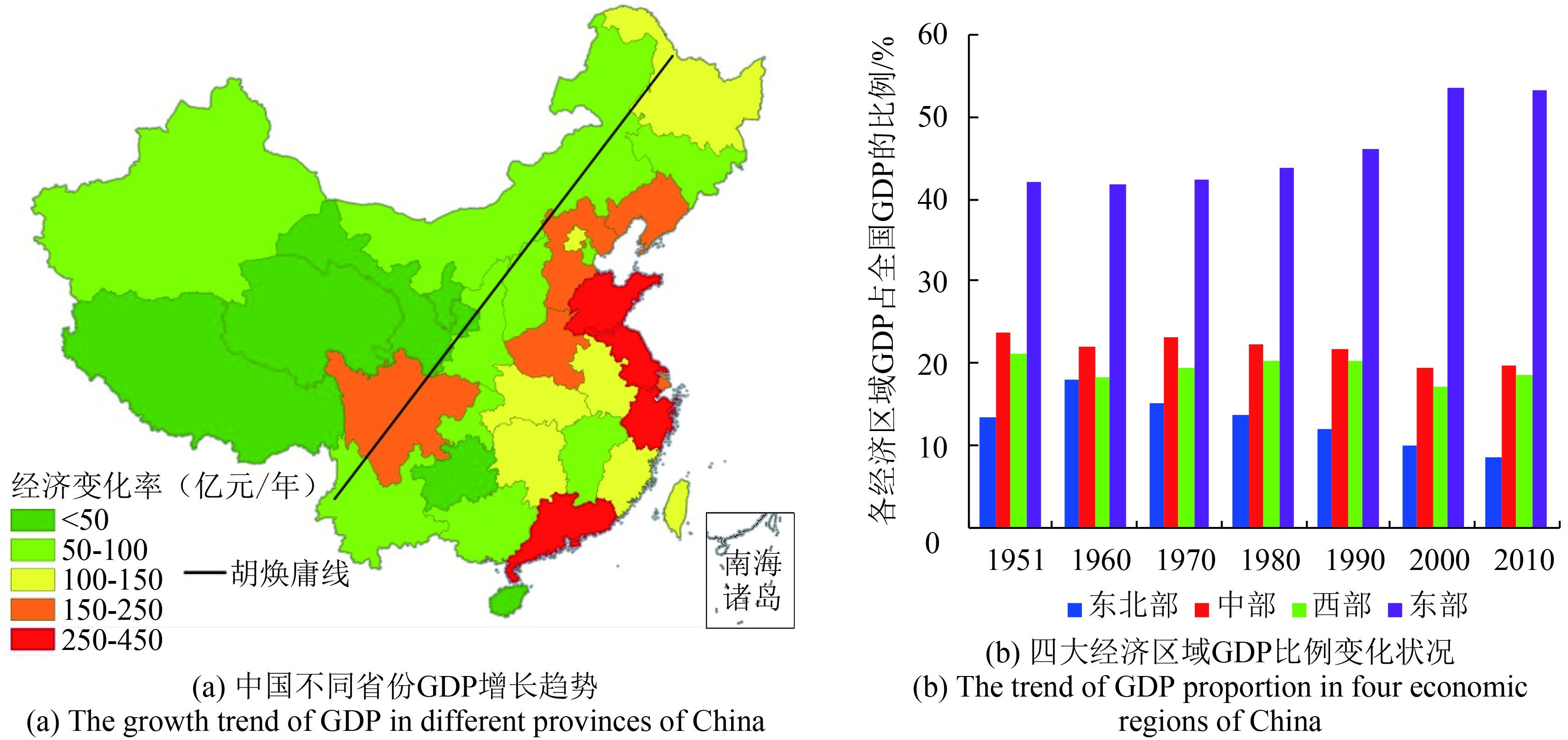 (1) 正确理解“总理之问”,尊重自然规律。胡焕庸线客观地反映了中国地形地貌、气候条件、生态环境、自然资源等自然地理要素的分布格局,同时也揭示了中国产业结构、风俗习惯、城镇格局、交通分布和社会历史条件等人文地理要素的空间格局,单纯地从人口分布上去打破这个规律是不可能的,同时也是没必要的。“总理之问”的提出,人们往往关注于“能不能破?”,而忽略了“如何破?”这一问题,而真正要打破东西部区域差异,则必然要立足于这一自然规律。
