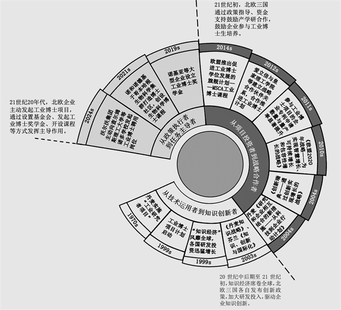 图 1 北欧工业博士项目中企业角色衍变的时间轴图 |