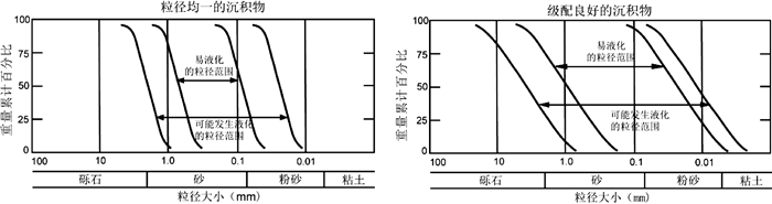 图 11 液化难易程度与粒度统计关系(据Tsuchida and Hayashi, 1971修改) Fig. 11 Grain size and susceptibility to liquefaction (after Tsuchida and Hayashi, 1971) |
