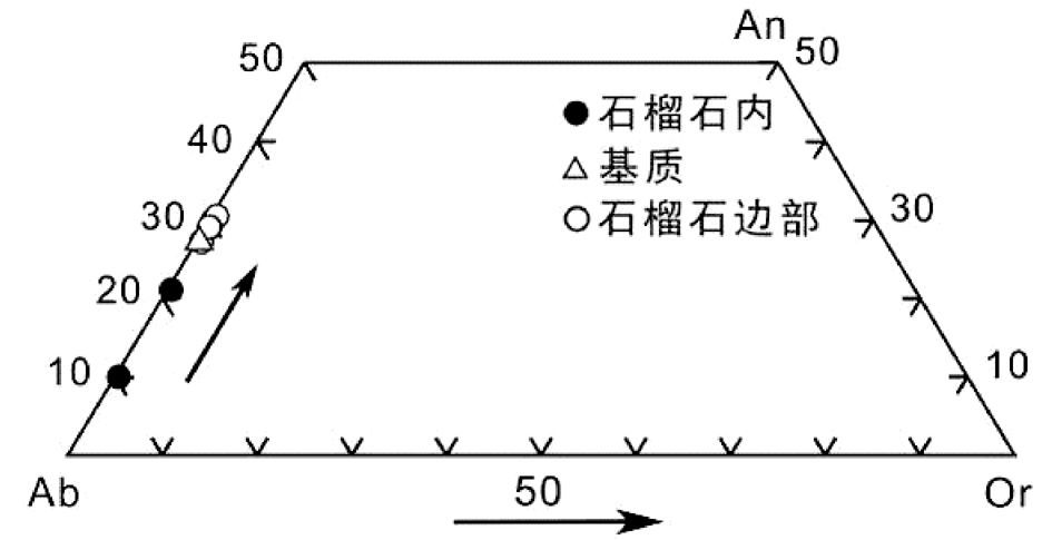 图 7 含榴尖晶黑云钾长片麻岩中斜长石的An-Ab-Or图解 Fig. 7 Ternary plot of An-Ab-Or for plagioclase from garnet-spinel-biotite-bearing paragneisses |