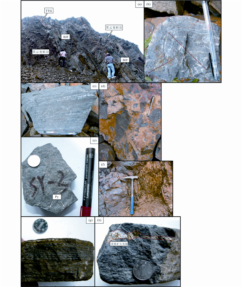 ![]() | 图 2 司家营BIF矿体和矿石特征 Fig. 2 Characteristics of ore bodies and ores in the Sijiaying BIF |