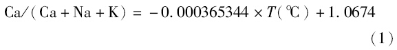 邓晋福(1983)提出了通过Ca/(Ca+Na+K)数值计算角闪石结晶温度的公式: