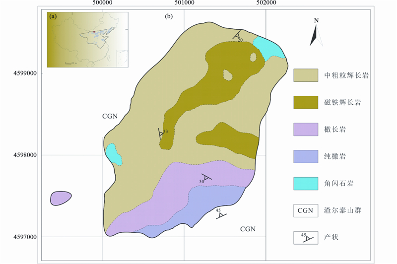内蒙古温根南基性-超基性岩岩体群位于华北地台西北缘,东临乌拉特中旗(图 1),西近狼山,北临中国-蒙古边境的索伦克尔蛇绿岩带,属于东亚造山带的东部延长部分,在地质构造分区上则属于台缘坳陷(狼山-白云鄂博)。因其处在华北板块与西伯利亚板块之间,具有独特的成岩成矿系统,故一直是地质工作研究热点。
