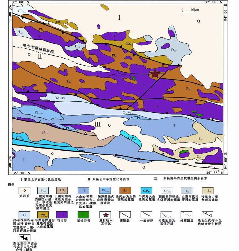 我们认为,夏日哈木镁铁质-超镁铁质岩体和镍矿床地质特征需要进一步阐述,许多重要的科学问题尚需论证或重新论证。例如,1)含矿岩体特殊的结构类型(详见后述);2)硫化物熔离与聚集机制;3)岩浆源区性质与地幔动力学机制;4)特殊的大地构造背景等。有鉴于此,我们拟以系列论文的方式阐述对上述及相关科学问题的认识。本文的重点是论述岩体地质特征、同化混染、原生岩浆性质与岩浆演化过程、地幔源区性质与大地构造背景。 1 地质背景