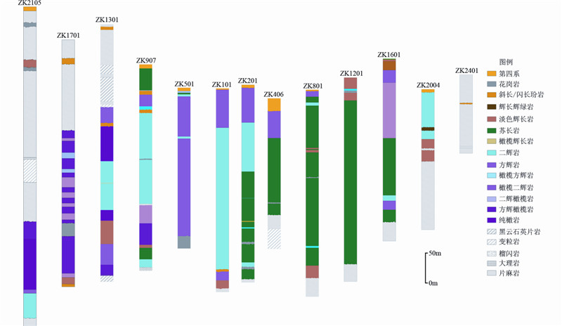 ![]() | 图 3 Ⅰ号岩体钻孔柱状图Fig. 3 Columnar section of No.Ⅰ intrusion |