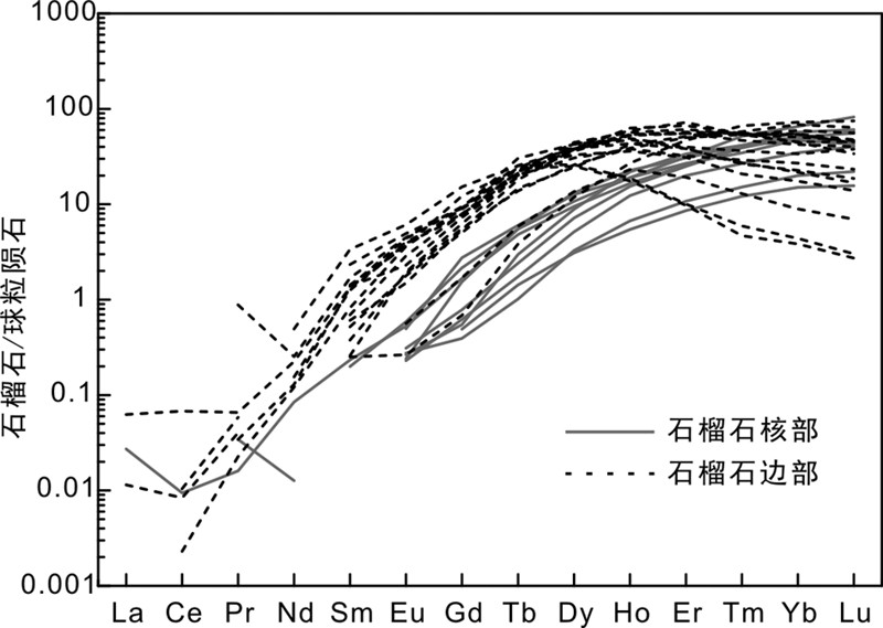 ![]() | 图 6 石榴石的稀土元素配分模式 Fig. 6 REE patterns of garnets in Songshugou eclogitearea |