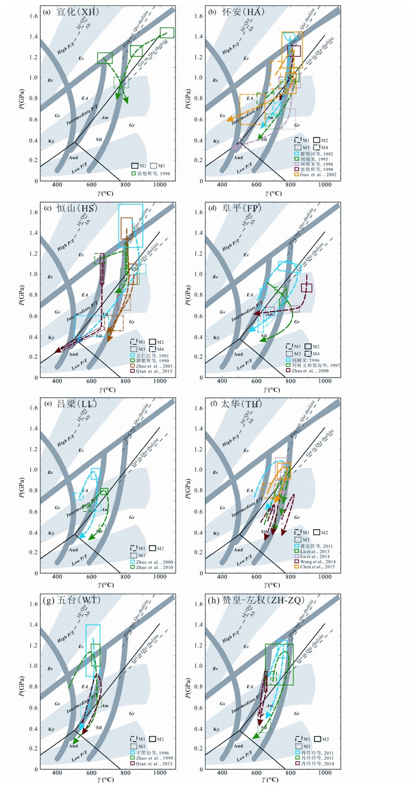![]() | 图 3 华北中部造山带宣化变质杂岩区不同变质阶段的最大温度和最大压力
