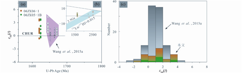 ![]() | 图 8 长城系碱性岩锆石Lu-Hf同位素 Fig. 8 Zircon Lu-Hf isotope of alkali rocks from Changchengian System |