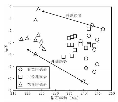 (4)对岩浆的体积添加速率的估算表明,从早到晚,该岩基的岩浆体积添加速率存在着旋回性的变化特征。其中,早三叠世石英闪长岩的岩浆体积添加速率最低,而晚三叠世花岗闪长岩的岩浆体积添加速率最高,中三叠世介于其间。添加速率的变化,主要与壳幔相互作用和构造体制的转换有关。