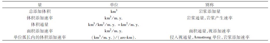 表 1 有关岩浆添加速率的术语比较(据Paterson et al., 2011; Paterson and Ducea, 2015) Table 1 Commonly used quantities about magma additions rates(after Paterson et al., 2011; Paterson and Ducea, 2015) |