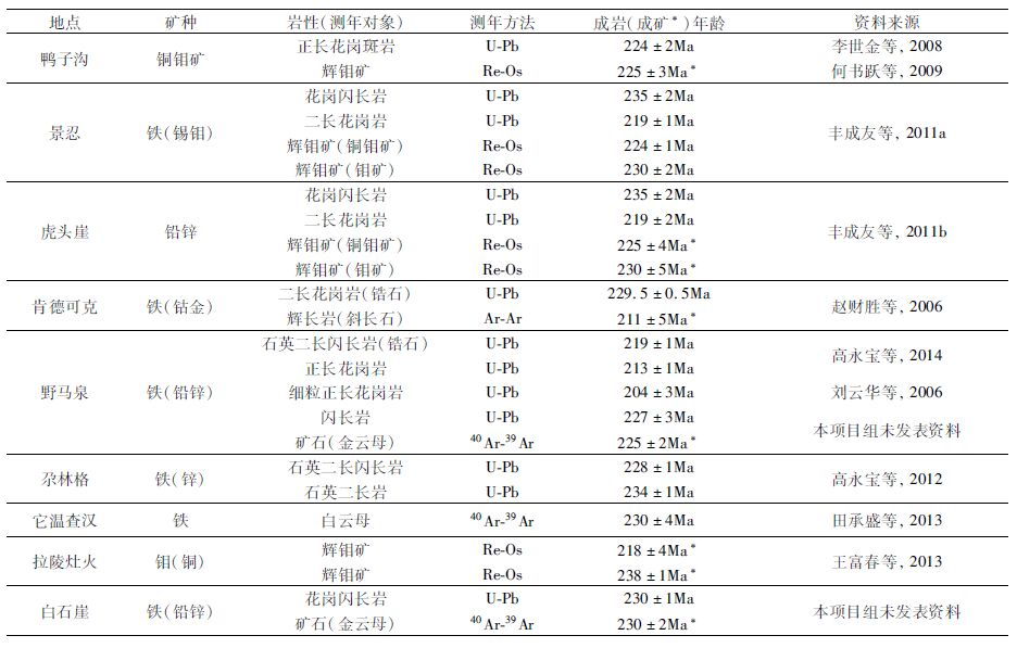 表 2 昆北地体中代表性的成岩成矿年龄对比 Table 2 Timing of magmatic crystallization and mineralization in representative granitoids and their ore deposits,Northern Kunlun Terrain |