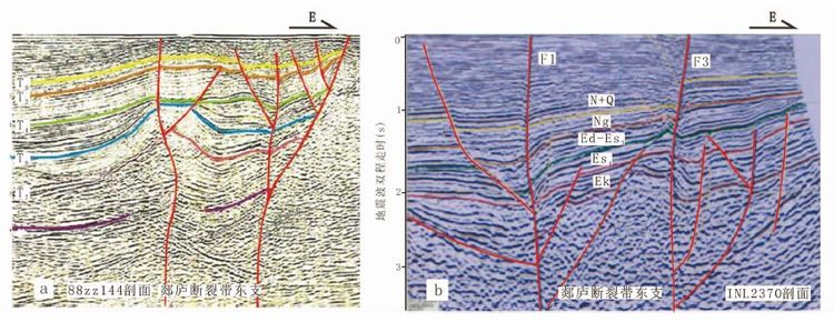 图 7 郯庐断裂带西支结构关系图(莱州湾凹陷与垦东低凸起之间) Fig. 7 The structure diagram of western branch of Tan-Lu fault(between Laizhou Bay sag and Kendong bulge) |