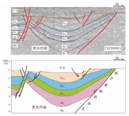 图 6 青东凹陷结构构造剖面图 Fig. 6 The east to north seismic section of Qingdong sag |
