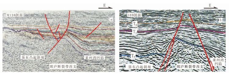 郯庐断裂带在莱州湾段主要由东、西两条北北东向延展的较大型支断裂带组成(图 1),综合分析对比区内大量地震剖面显示,东、西两支断裂带的地质构造特征差别较大。