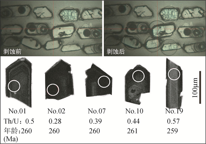 图 2 同普岩基样品锆石预剥蚀前后反射图像对比图和锆石CL图像特征 Fig. 2 Comparison of reflection images of zircons before and after pre-ablation and cathodoluminescence (CL) images of zircons from samples from the Tongpu batholith |