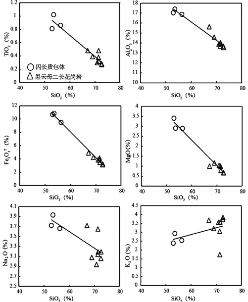 图 11 措交玛岩基Harker图解 Fig. 11 Harker diagrams for the Cuojiaoma batholith |