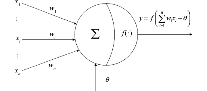 1 基本理论 1.1 人工神经网络模型人工神经网络(Artificial Neural Networks)指的是由具有适应性的简单单元组成的广泛并行互连的网络,它的组织能够模拟生物神经系统对真实世界物体所作出的交互反应(Kohonen, 1988)。人工神经网络中最基本的组成是神经元。在生物神经网络中,每个神经元与其他神经元相连,当它被激活时,就会向相连的神经元发送化学物质,从而改变这些神经元内的电位;如果某神经元的电位超过了一个“阈值”,那么它就会被激活,向其他神经元发送化学物质(周志华, 2016)。