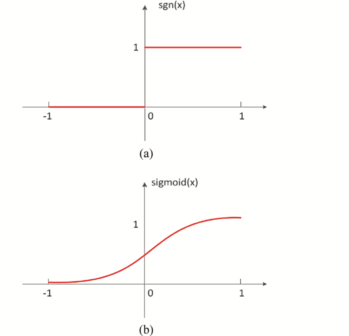 图 2 阶跃函数(a)和Sigmoid函数(b) Fig. 2 Step function (a) and Sigmoid function (b) |