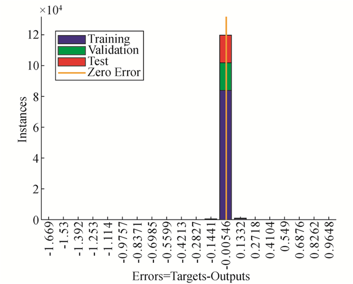 图 5 训练、验证和测试数据集误差分布柱状图 Fig. 5 Error histogram distribution of the training, validation and test sets |
