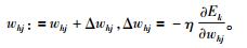 BP算法可以基于梯度下降算法,以目标的负梯度方向对参数进行调整。对公式(3)的误差Ek,给定学习率η,按如下公式迭代更新: