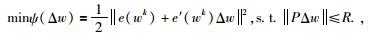 其中,Δw表示权值增量,参数R>0为广义球半径。利用Lagrange乘子μ求解(8)的优化算法称为L-M算法。本文,本文取P为恒等算子,Lagrange乘子μ也可以称作学习率。公式(8)是极小化问题(7)的子问题形式,并且是一种正则化算法(Wang and Yuan, 2005; 王彦飞, 2007)。