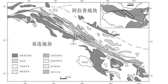 图 1 北祁连造山带区域地质简图(据Song et al., 2013修改) Fig. 1 Simplified regional geological map of the North Qilian orogenic belt (modified after Song et al., 2013) |