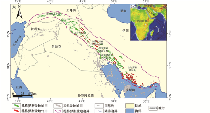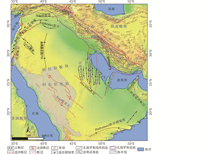 扎格罗斯盆地位于阿拉伯板块的东缘,自古生代以来主要经历了二叠纪-三叠纪弧后伸展、侏罗纪-早白垩世被动大陆边缘和晚白垩世-第四纪前陆盆地等3期构造-沉积演化阶段(刘小兵等,2018)。新近纪以来,随着非洲板块与阿拉伯板块之间的裂谷进一步伸展,逐步形成红海初始洋盆,区域性伸展使阿拉伯板块向伊朗地块俯冲、碰撞,在阿拉伯板块北部和东北部形成了晚新生代扎格罗斯周缘前陆盆地(Pitman et al., 2004)。
