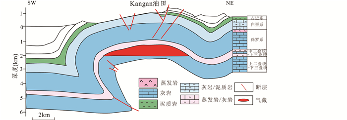 图 10 法尔斯段Kangan气田剖面图 Fig. 10 Structural cross section of Kangan field in Fars section |