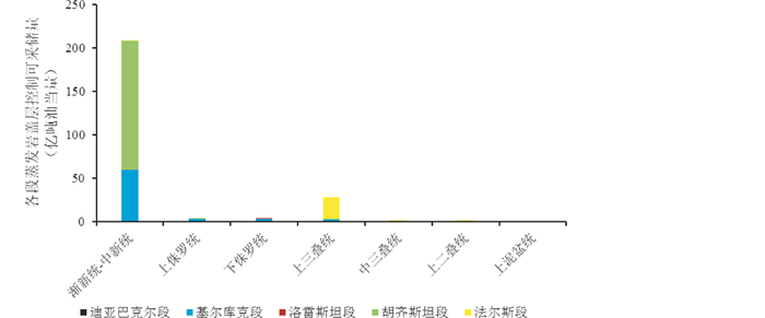 图 13 扎格罗斯盆地不同层系蒸发岩盖层控制储量分布图 Fig. 13 Different evaporite stages and its controlling reserves in each section of Zagros basin |
