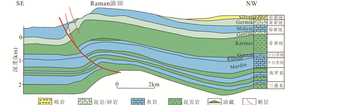 图 6 迪亚巴克尔段Raman油田构造剖面图 Fig. 6 Structural cross section of Raman field in Diyarbakir section |