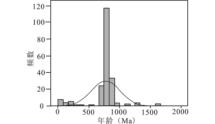 关于摩天岭岩体的时代,一直存在不同看法。20世纪60年代1:20万三江、罗城和融安幅区调报告(广西区域地质测量队, 1966①)认为其时代是加里东期;1:5万滚贝等四幅区调报告(广西区域地质调查院, 1994②)采用锆石U-Pb法所测定的同位素年龄值分别为:更丹地区872±12Ma,吉羊地区858±50Ma,汪洞地区859±29Ma,水碾地区822±30Ma。赵子杰和宜昌地质矿产研究所(1987)测得摩天岭岩体全岩Rb-Sr同位素年龄为845Ma,饶冰等(1989)测得九桶岩体的Rb-Sr等时线年龄为668Ma,李献华(1999)利用锆石SHRIMP U-Pb定年法测定摩天岭岩体和元宝山岩体的年龄分别为825±8Ma和824±4Ma。在笔者研究的摩天岭岩体中测得不同类型岩浆岩锆石SHRIMP U-Pb年龄结果显示(徐争启等, 2014),花岗岩锆石年龄具有多期特征,主要集中在770~828Ma,少量测点为85Ma左右,极少量测点为218Ma(表 3、图 8)。