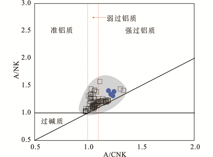 图 5 班戈地区曲梅勒花岗岩A/CNK-A/NK图(据Maniar and Piccoli, 1989) Fig. 5 A/CNK vs. A/NK diagram of Qumeile granite in Baingoin area (after Maniar and Piccoli, 1989) |