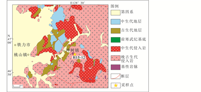 图 3 铁力地区地质图和采样位置(据Ge et al., 2019) Fig. 3 Detailed geological map with the sampling locality in the Tieli area (modified after Ge et al., 2019) |