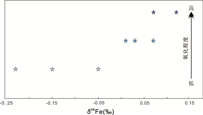 图 11 中国云南高松锡多金属矿床的Fe同位素组成与矿石氧化程度呈正相关关系(据Cheng et al., 2015修改) Fig. 11 Fe isotopic compositions of the oxidized ores with various oxidation degrees from the Gaosong deposit, China (modified after Cheng et al., 2015) |