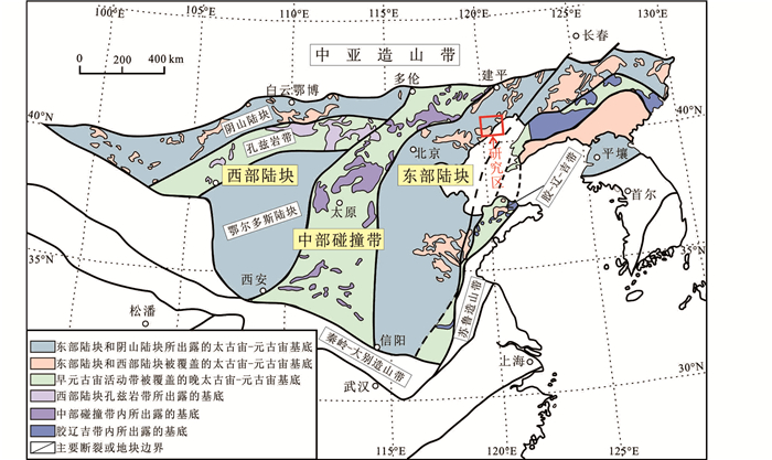 图 1 华北克拉通大地构造简图(据赵国春, 2009修改)及研究区位置 Fig. 1 Simplified tectonic map of North China Craton (modified after Zhao, 2009) showing the tectonic location of study area |