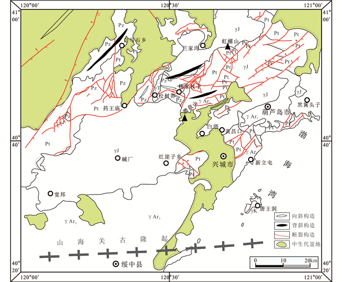 图 2 辽西兴城地区构造纲要图 Fig. 2 Structure outline map of Xingcheng area, western Liaoning Province |
