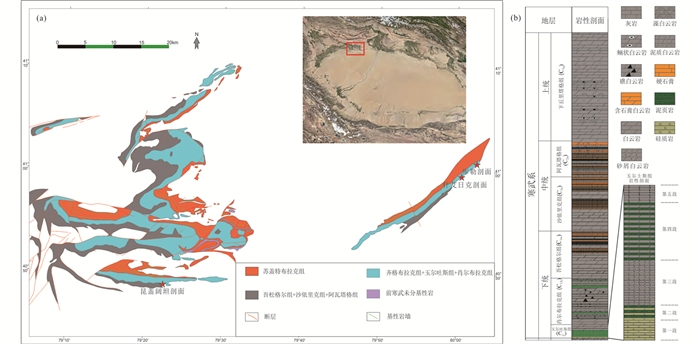 1 地质背景阿克苏地区位于塔里木盆地西北缘(图 1a),其南华-震旦系沉积建造反映了构造环境由陆内断陷向初始被动大陆边缘变迁(Zhang et al., 2016; Vandyk et al., 2019)。南华系主要为一套厚约2km的硬砂岩建造,岩性以灰绿色和紫红色的长石砂岩、粉砂岩互层为主,分选和磨圆度都较差;下部东巧恩布拉克组泥砾岩段与Sturtian冰期对应;顶部为百余米厚的紫红色冲积扇相砂砾岩和大陆冰碛岩组合,与Marinoan冰期对应(Vandyk et al., 2019)。震旦系主要为滨浅海-潮坪相砂泥岩和碳酸盐岩组合,在乌什磷矿沟剖面超覆于阿克苏群绿片岩基底之上,在尤尔美那克剖面不整合于南华系冰碛岩段之上(Vandyk et al., 2019)。震旦纪末期的“柯坪运动”造成区域性抬升,阿克苏地区在上震旦统齐格布拉克组顶部遭受剥蚀,而在齐格布拉克组和玉尔吐斯组之间形成不整合面;寒武纪早期发生再次沉降,经历了较大规模的海侵作用从而在玉尔吐斯组发育了黑色岩系(林畅松等, 2008; Yu et al., 2009; Liu et al., 2012; 朱光有等, 2016; 杨宗玉等, 2017; Zhu et al., 2020)。