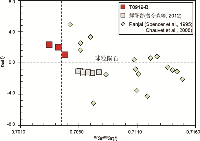 图 8 特提斯喜马拉雅带内晚二叠世岩浆岩εNd(t)-87Sr/86Sr(t)关系图解 Fig. 8 Plot of εNd(t) vs. 87Sr/86Sr(t) of Late Permian magmatic rocks from the Tethyan Himalayan |