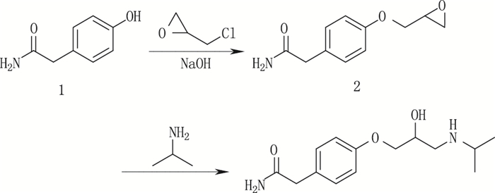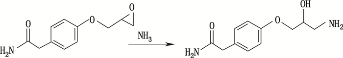 从生产企业提供的阿替洛尔合成路线:由对羟基苯乙酰胺与环氧氯丙烷在氢氧化钠碱液条件下反应得到环氧化物(缩合物),再与异丙胺反应得到阿替洛尔。见图 8。
