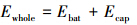 混合储能系统由蓄电池和超级电容组合而成,储能系统总容量为Ewhole,蓄电池容量为Ebat,超级电容容量为Ecap,三者之间关系如下: