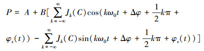 如图 2所示COSTAS环的主要功能是提取输入信号P1中的频率为ω0的信号分量成分,同时消除该频段的相移变化量Δφ。根据式(2)所示贝塞尔展开,取输入信号P的一阶分量P1为