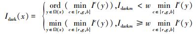式中Idarkm(x)称为暗原色中值,该方法获得的透射率图见图 1(c)中值滤波的透射图。