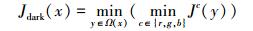式中:Jc(x)为J(x)的R、G、B三原色通道;Ω(x)是以像素点x为中心的方形区域。式(3)即为暗原色先验公式。