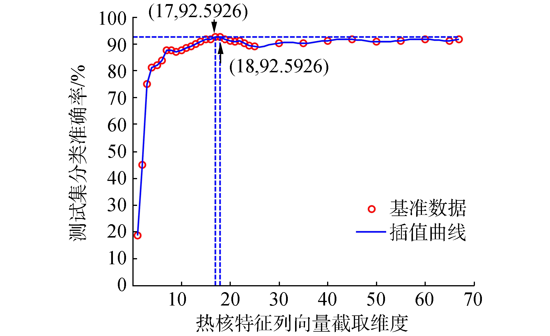 | 图 8 截取维度对测试集分类准确率影响的插值曲线 |