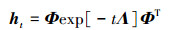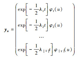 式中:ht是热核;t表示时间。可将热核视作是穿过图的边,并随时间变化而不断流动的信息。热核能量的流动速率是由图的拉普拉斯矩阵决定。热核方程式的解析式[8]由拉普拉斯矩阵谱特征与时间共同建立,即