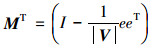 式中e=(1, 1, …, 1)Τ是长度为|V|的全1向量。然后由坐标均值向量得到中心坐标矩阵Yc=Y-