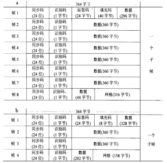 | 图 3. HRI图像数据子帧格式 (a) A模式 (b) B模式 | |