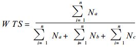 式中Na是一个月中实况有雨预报正确的天数, Nb和Nc分别是一个月中空报和漏报的天数.若把27个测站视作一个整体考虑, 定义整体TS评分 (WTS)