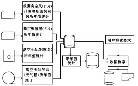 5 数据集建立的工作流程高空资料数据集建立的工作流程如图 3所示, 它由历年值统计、累年值统计和数据检索等3个基本部分组成.