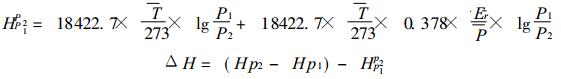 式中P2、P1分别为上、下两个相邻等压面的标准气压值 (hPa), HPP12为上下层等压面厚度计算值 (m), T为气层平均温度 (K), P为气层平均气压 (hPa),